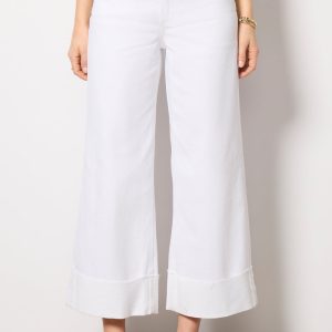 Finished in a clean white wash, the Lana jean by Pistola features a wide leg silhouette with a high-rise fit and cuffed hems. The soft cotton denim has a hint of stretch, making them perfect for day-to-night wear.