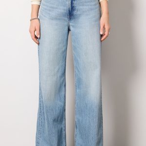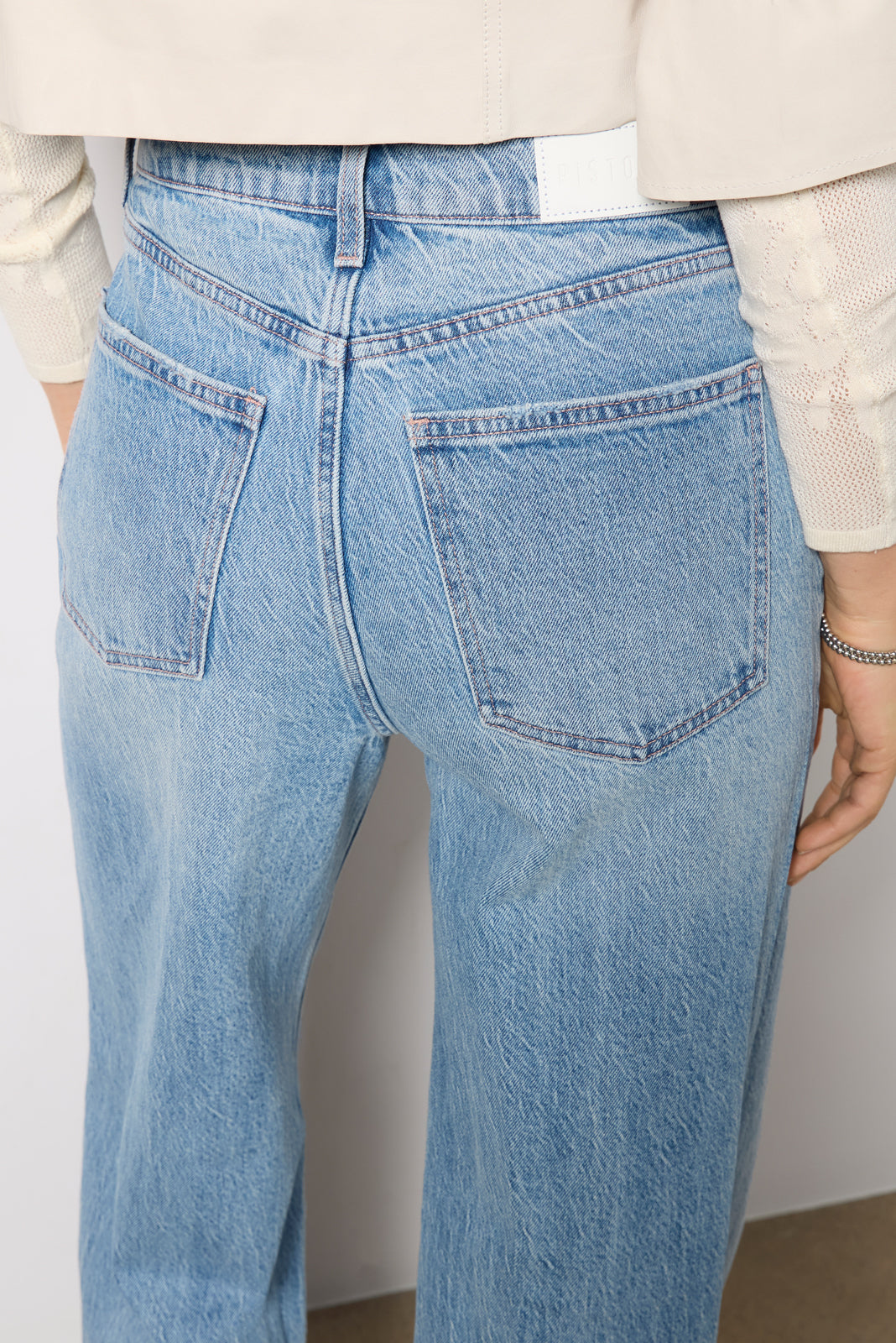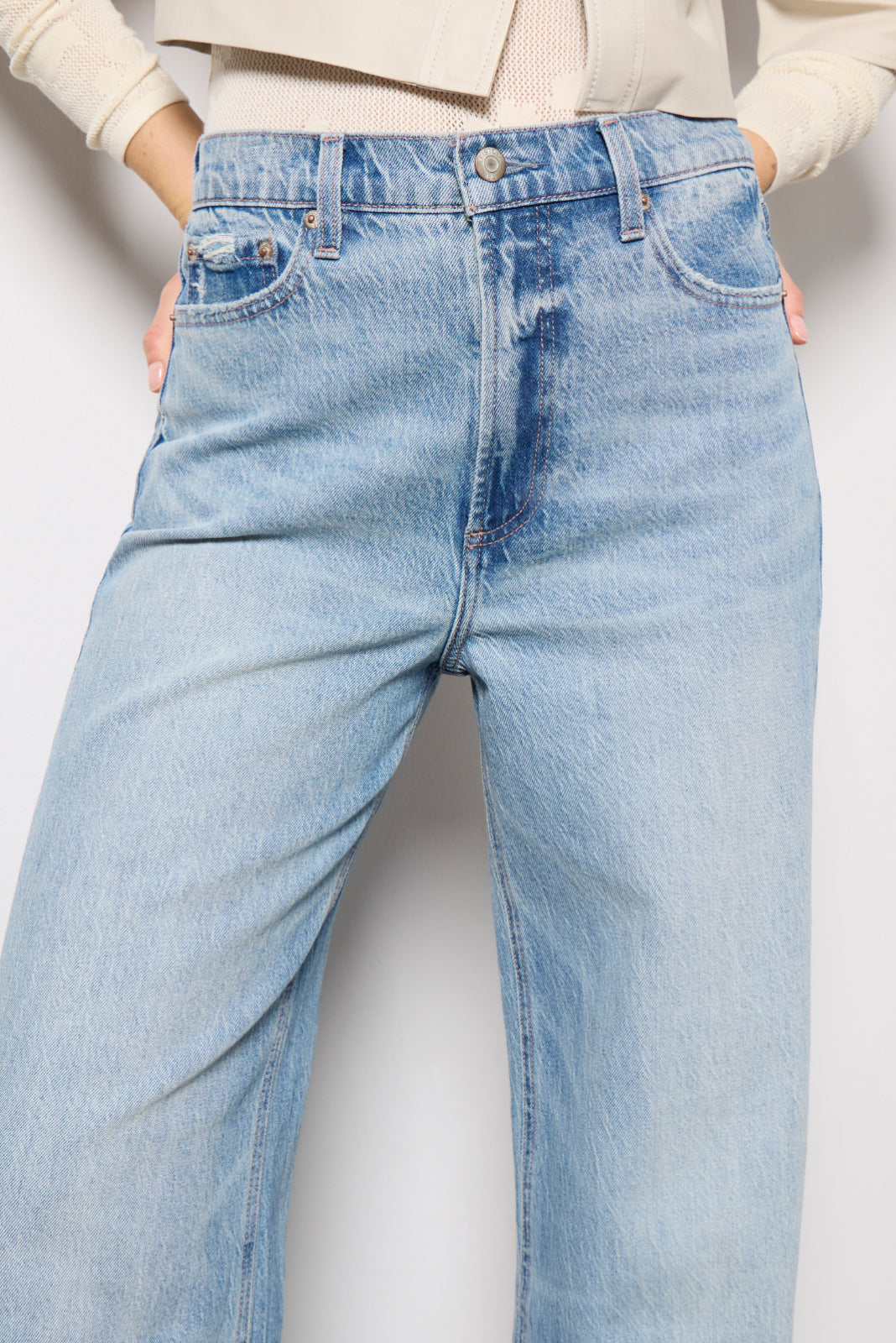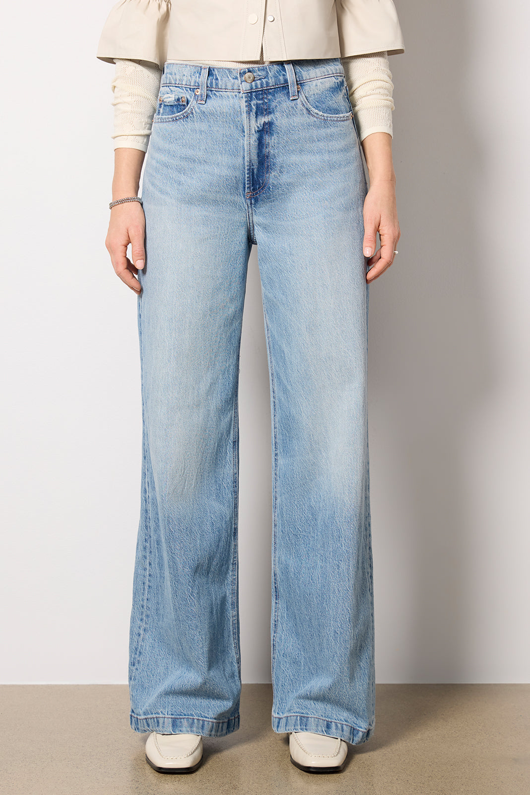 Crafted in a soft stretch cotton, the Lana Wide Leg Jean from Pistola features a full-length inseam with a trouser hem, a high-rise fit, and a clean light blue wash.