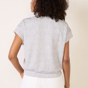Add a pop of print to your everyday wardrobe with the Layla leopard sweatshirt top by EVEREVE, finished in soft scuba knit fabric with cap sleeves and a banded, cropped hem.