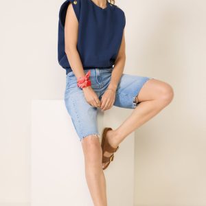 Gold shoulder buttons add a chic touch to this sleeveless sweatshirt by Clare V., featuring a relaxed fit, banded hem, and soft cotton fleece fabric.