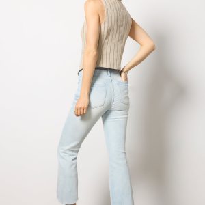 Finished in comfort-stretch denim, the Lennon bootcut jean by Pistola features a high-rise silhouette with raw ankle-length hems and subtle distressed details.