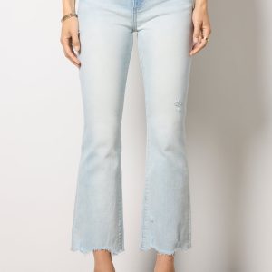 Finished in comfort-stretch denim, the Lennon bootcut jean by Pistola features a high-rise silhouette with raw ankle-length hems and subtle distressed details.