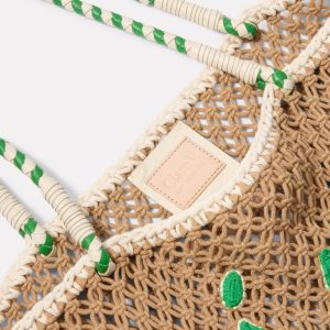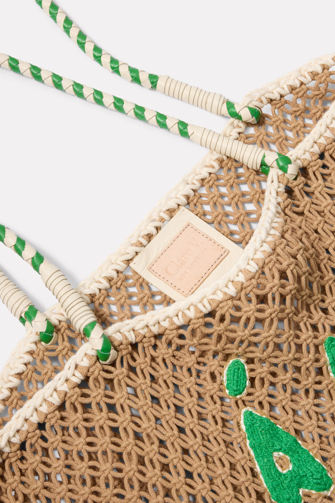 Carry all your beach day necessities with this crochet tote by Clare V. Crafted in woven cotton with leather-wrapped straps, this fun and functional bag features an open-top design with an unlined interior.