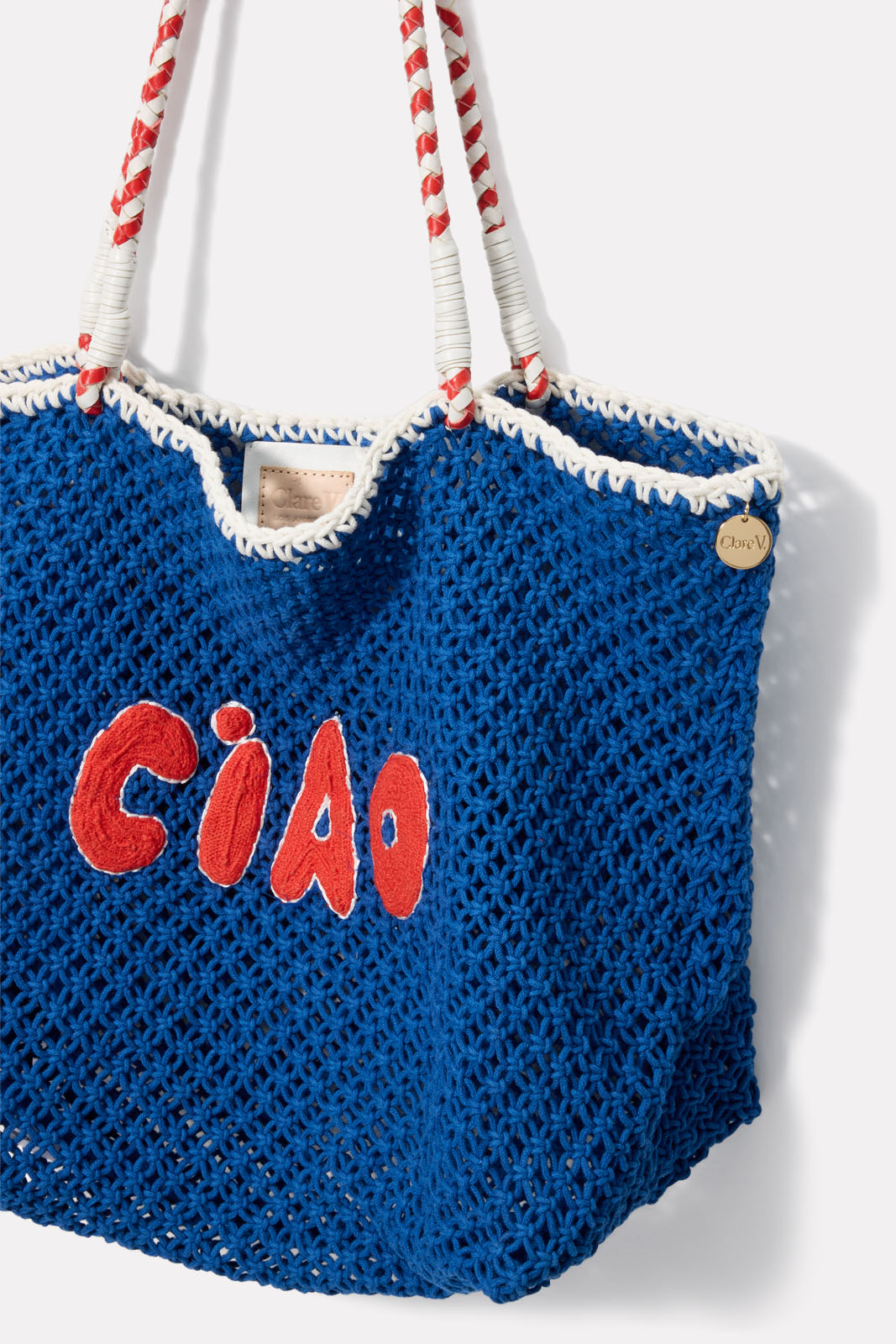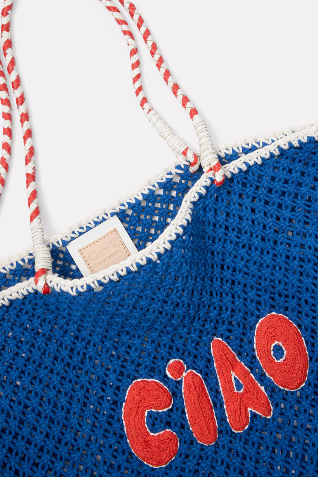 Carry all your beach day necessities with this crochet tote by Clare V. Crafted in woven cotton with leather-wrapped straps, this fun and functional bag features an open-top design with an unlined interior.