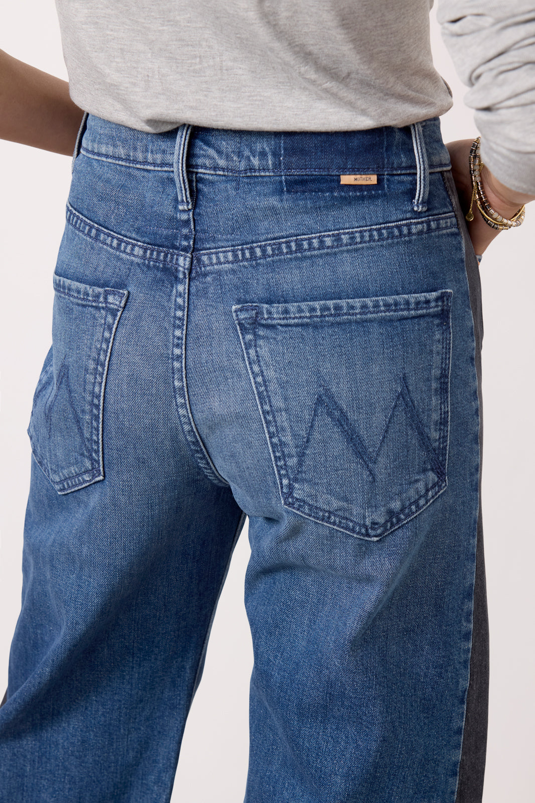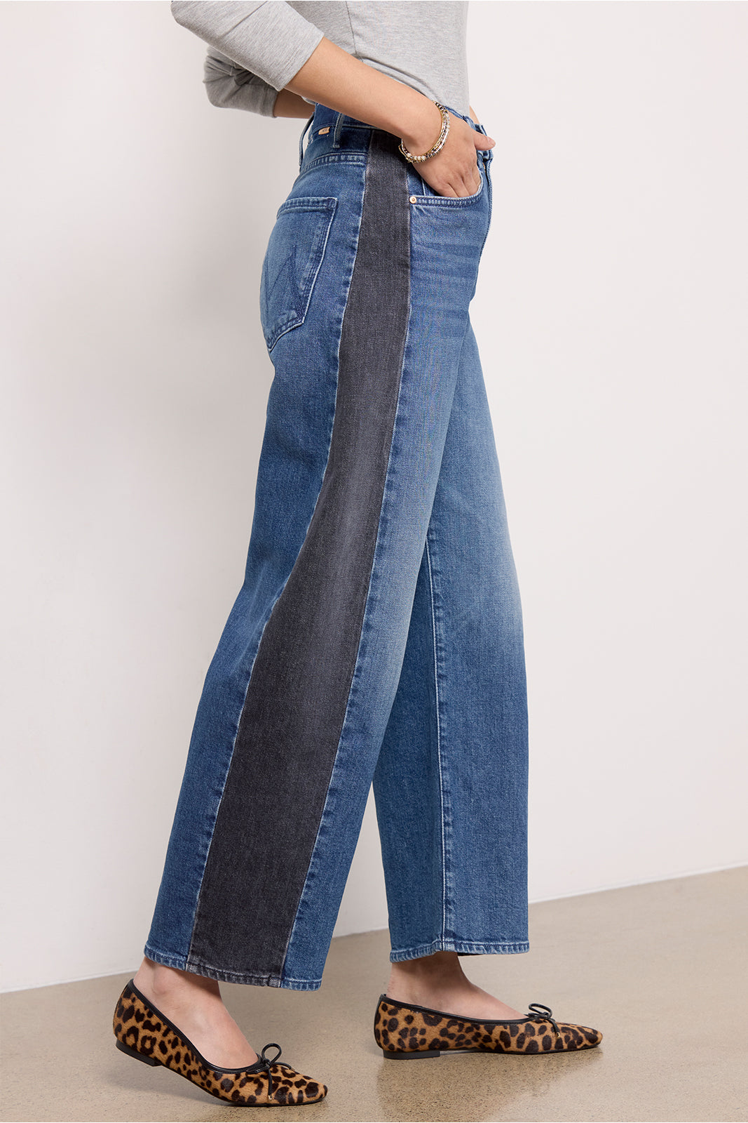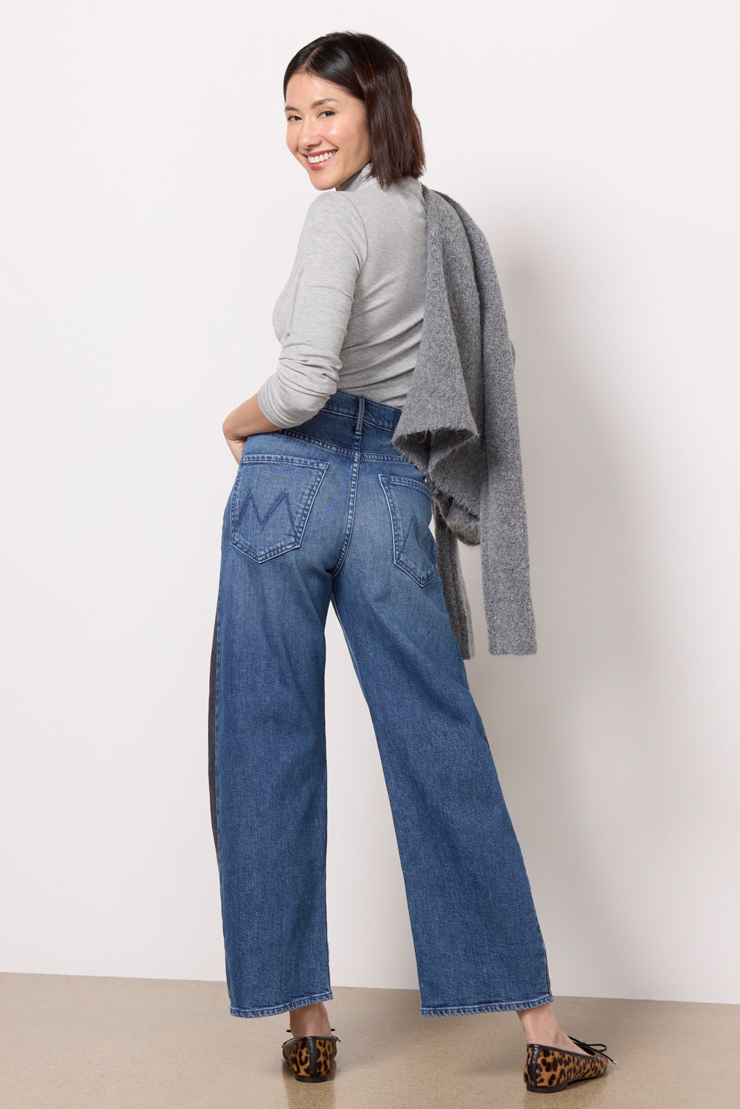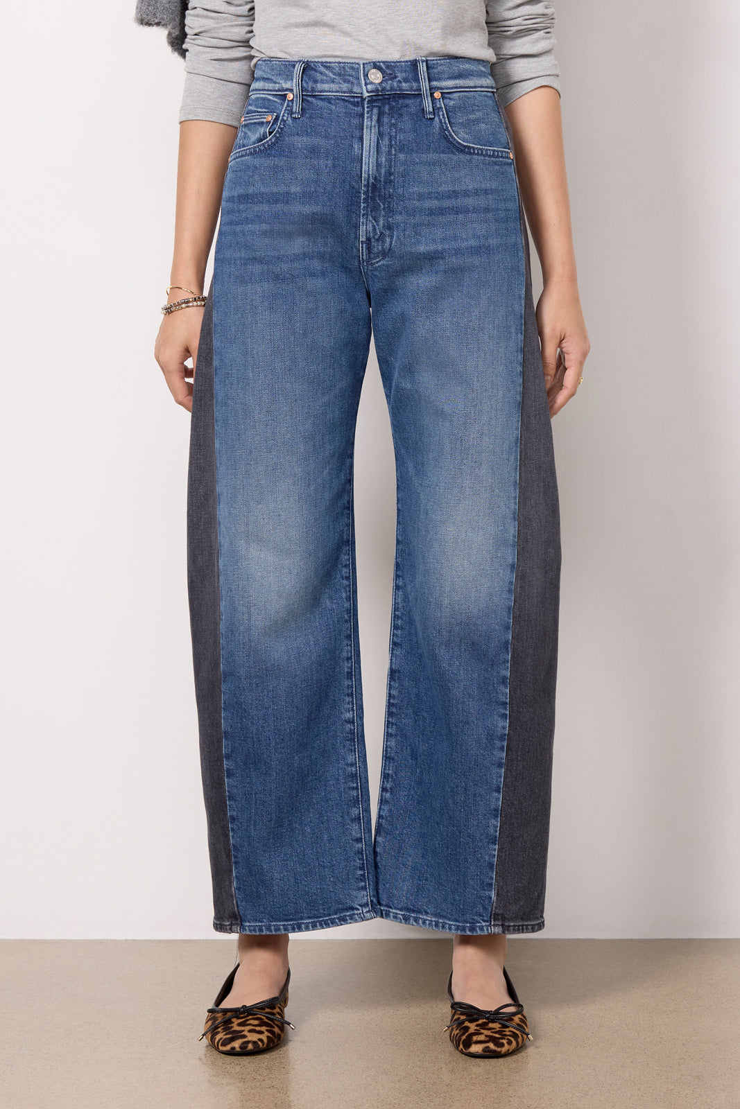 The LilHalf Pipe Flood by MOTHERis a petite barrel jean, featuring a high-rise fit, curved leg, and faded black panelsdown the sides. Designed to complement petite body types, these jeans feature a higher knee placement, shorter inseam, and shorter rise for a perfect, always-flattering fit.