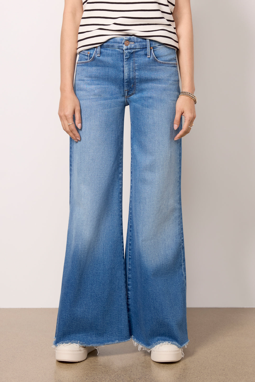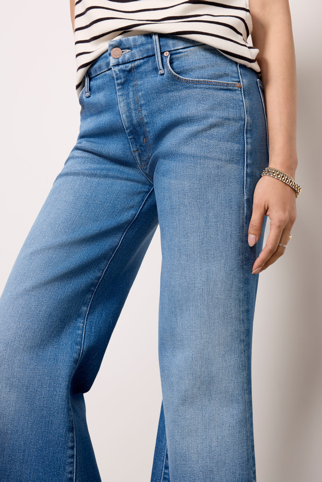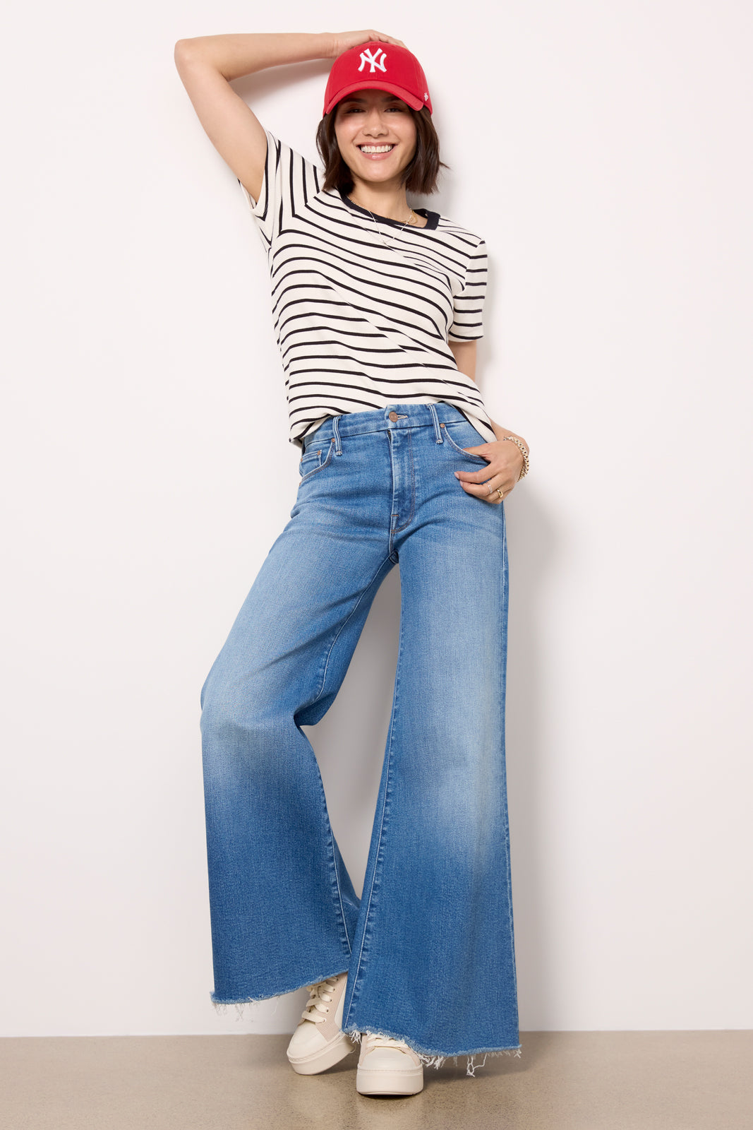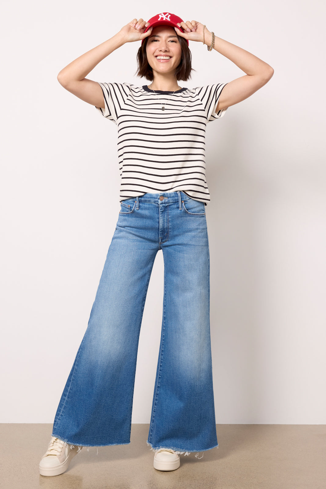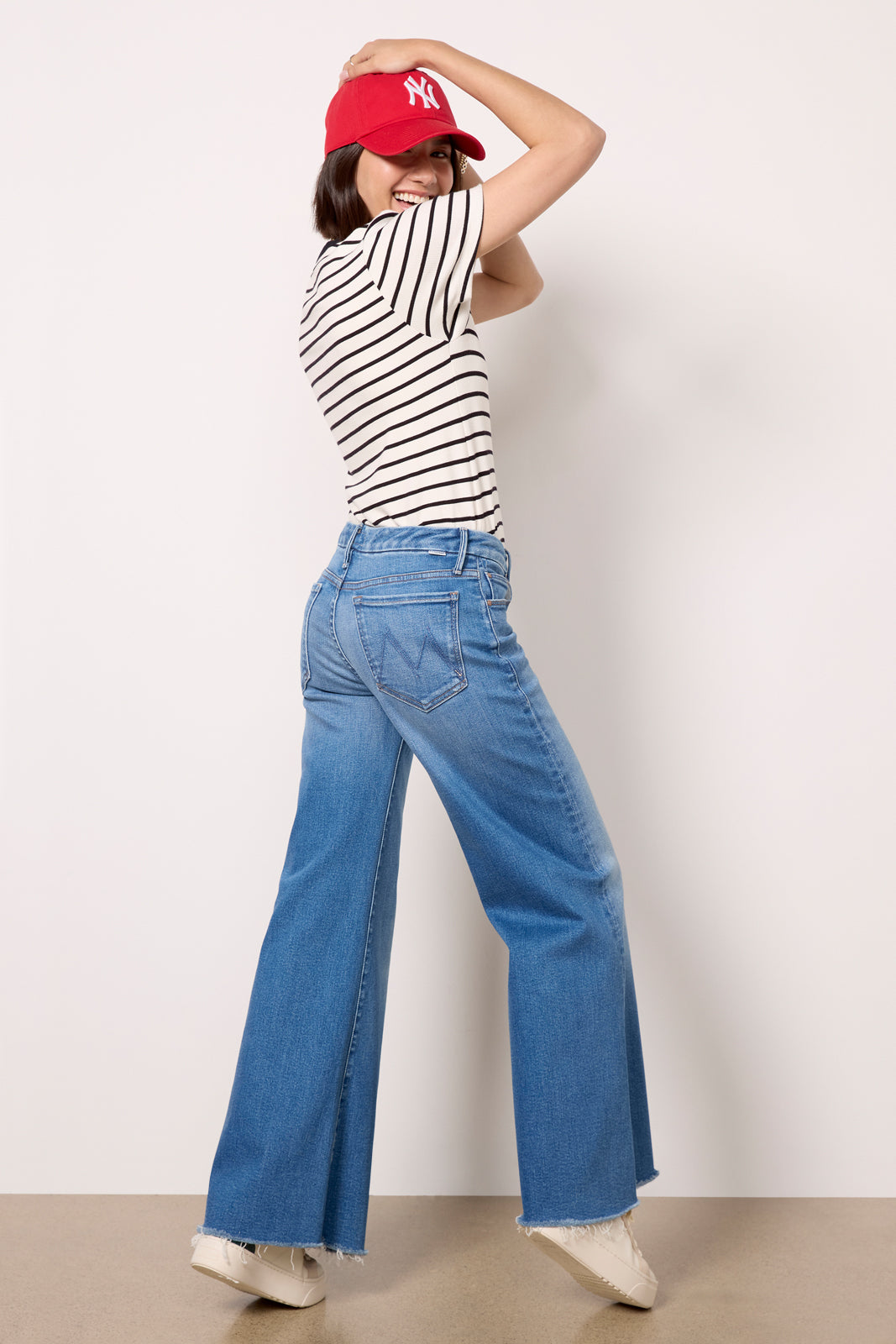 The Lil Roller Fray jean by MOTHER is a petite wide leg silhouette, crafted in soft stretch denim with a full-length leg and raw hems.Designed to complement petite body types, these jeans feature a higher knee placement, shorter inseam, and shorter rise for a perfect, always-flattering fit.