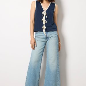 The LilTomcat Roller jean by MOTHER is a petitewide leg silhouette, crafted in soft, semi-rigid denim with afull-length 29″ inseam, clean hems, andlight blue wash. Designed to complement petite body types, these jeans feature a higher knee placement, shorter inseam, and shorter rise for a perfect, always-flattering fit.