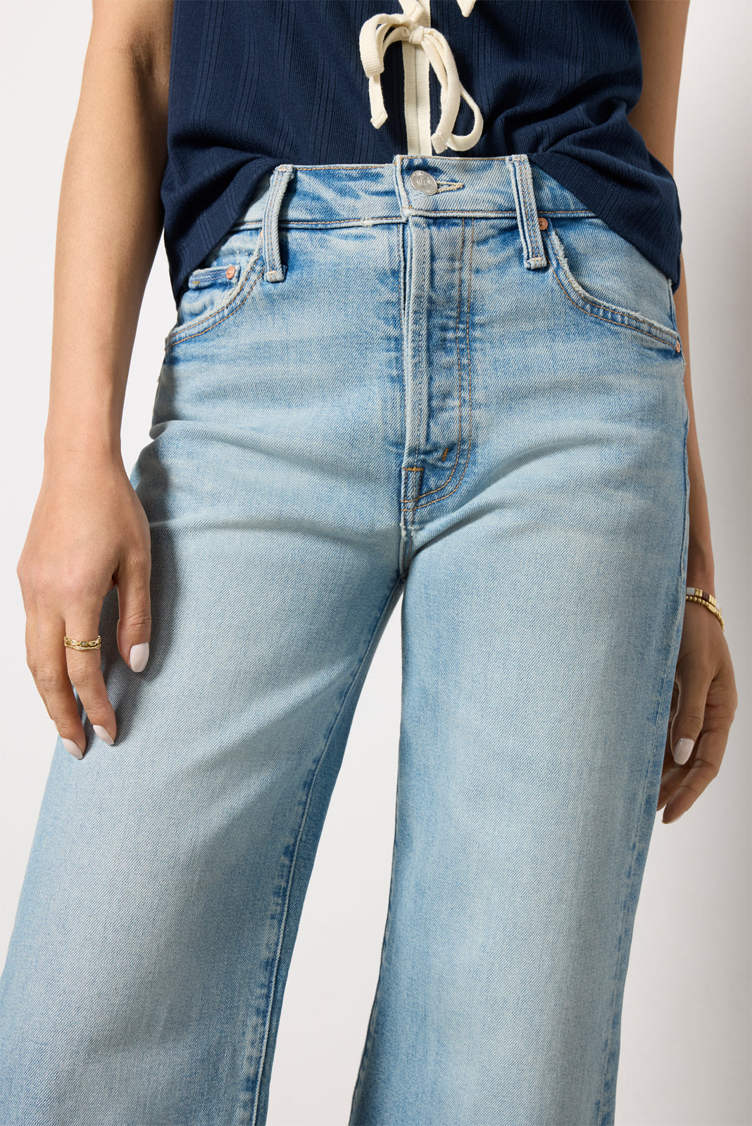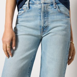 The LilTomcat Roller jean by MOTHER is a petitewide leg silhouette, crafted in soft, semi-rigid denim with afull-length 29″ inseam, clean hems, andlight blue wash. Designed to complement petite body types, these jeans feature a higher knee placement, shorter inseam, and shorter rise for a perfect, always-flattering fit.