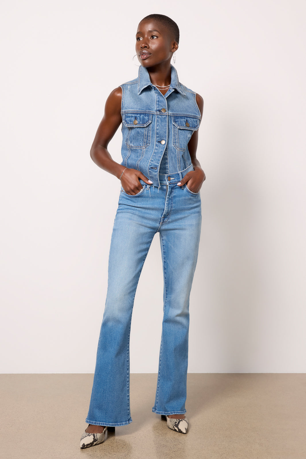 The Lil Weekender is a petite version of MOTHER’s signature flared jean, featuring a full-length leg, mid-rise waist, and soft mid-wash denim with a touch of stretch.Designed to complement petite body types, these jeans feature a higher knee placement, shorter inseam, and shorter rise for a perfect, always-flattering fit.