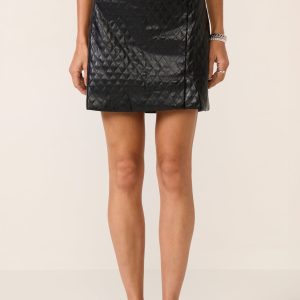 Elevate your night-out look with this vegan leather mini skirt by Melissa Nepton, featuring a diamond quilting pattern, back elastic waistband, and side zipper closure.