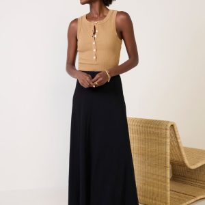 Easily dressed up or down, the versatile Liza midi skirt by perfectwhitetee is crafted from soft, flowy slub fabric with a comfortable elastic waistband and vertical center seams.