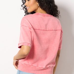Top off your weekend wardrobe with this comfy-cool sweatshirt by EVEREVE, crafted in soft garment-dyed fabric with short sleeves, reverse seam detailing, and ribbed trim.