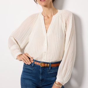 Update your work style with this flattering blouse by Cloth and Stone featuring a split v-neckline, front button closures, pleat detailing, and a relaxed silhouette.