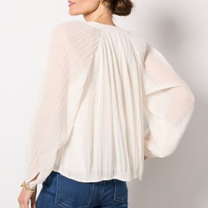 Long Sleeve Pleated Blouse