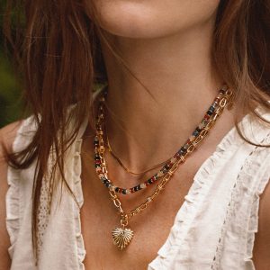 Accent any look with the Lorna necklace by EVEREVE, featuring multicolored beads and 14k gold plated accents—perfect for wearing alone or layered.