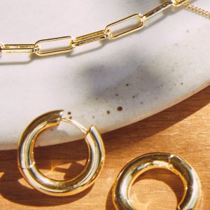 The perfect everyday hoop, these Gorjana earrings feature a simple yet bold design with an 18k gold plated finish and hinge closure.