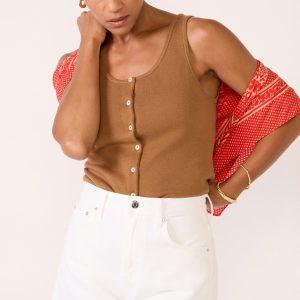 Knit from a soft blend of cotton and cashmere, the Louisa sweater vest tank by Alex Mill features a semi-fitted silhouette with front button closures and a scoop neckline.