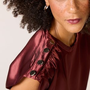 Finished in gorgeous satin fabric, the Lucca sleeveless blouse by Melissa Nepton features a relaxed, drapey silhouette, back keyhole button closure, and gathered shoulders with button details.