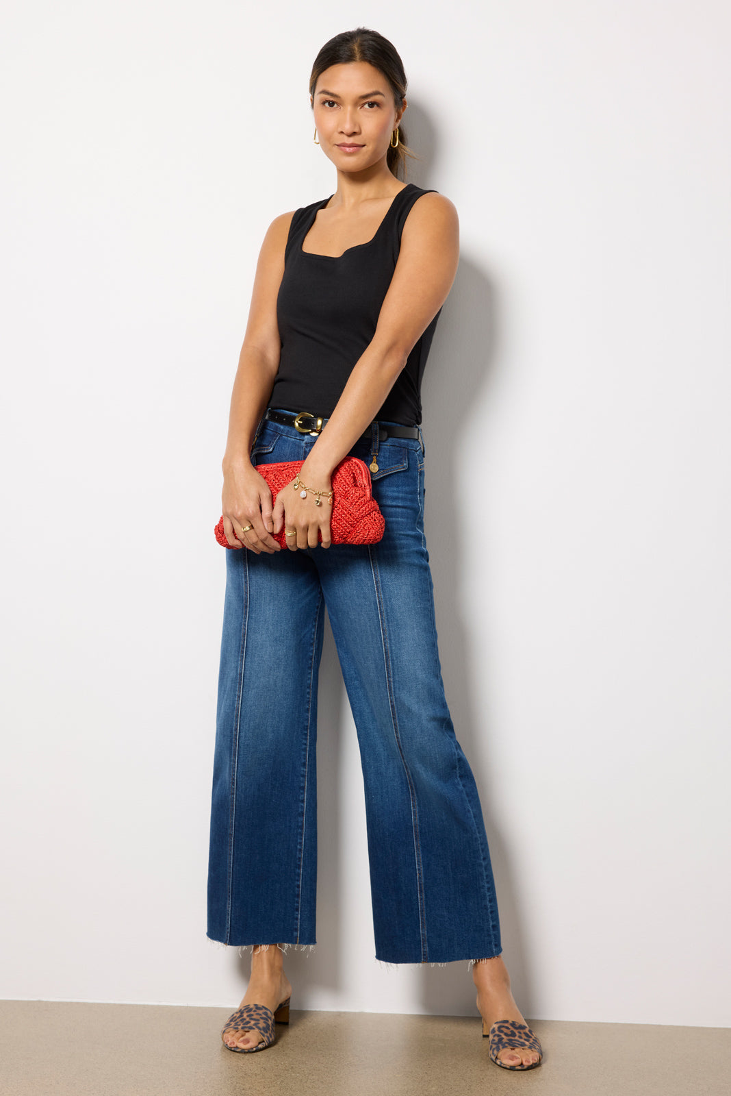 A chic square neckline defines this versatile tank top by Michael Stars, finished in soft rib knit fabric with ruching at thesides for a flattering touch.