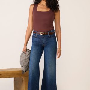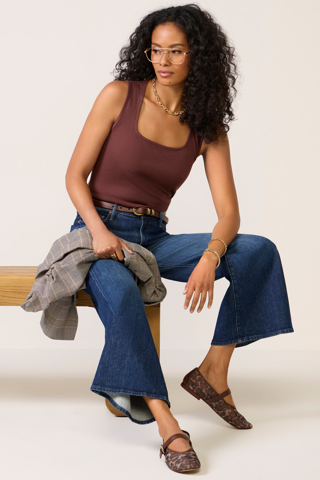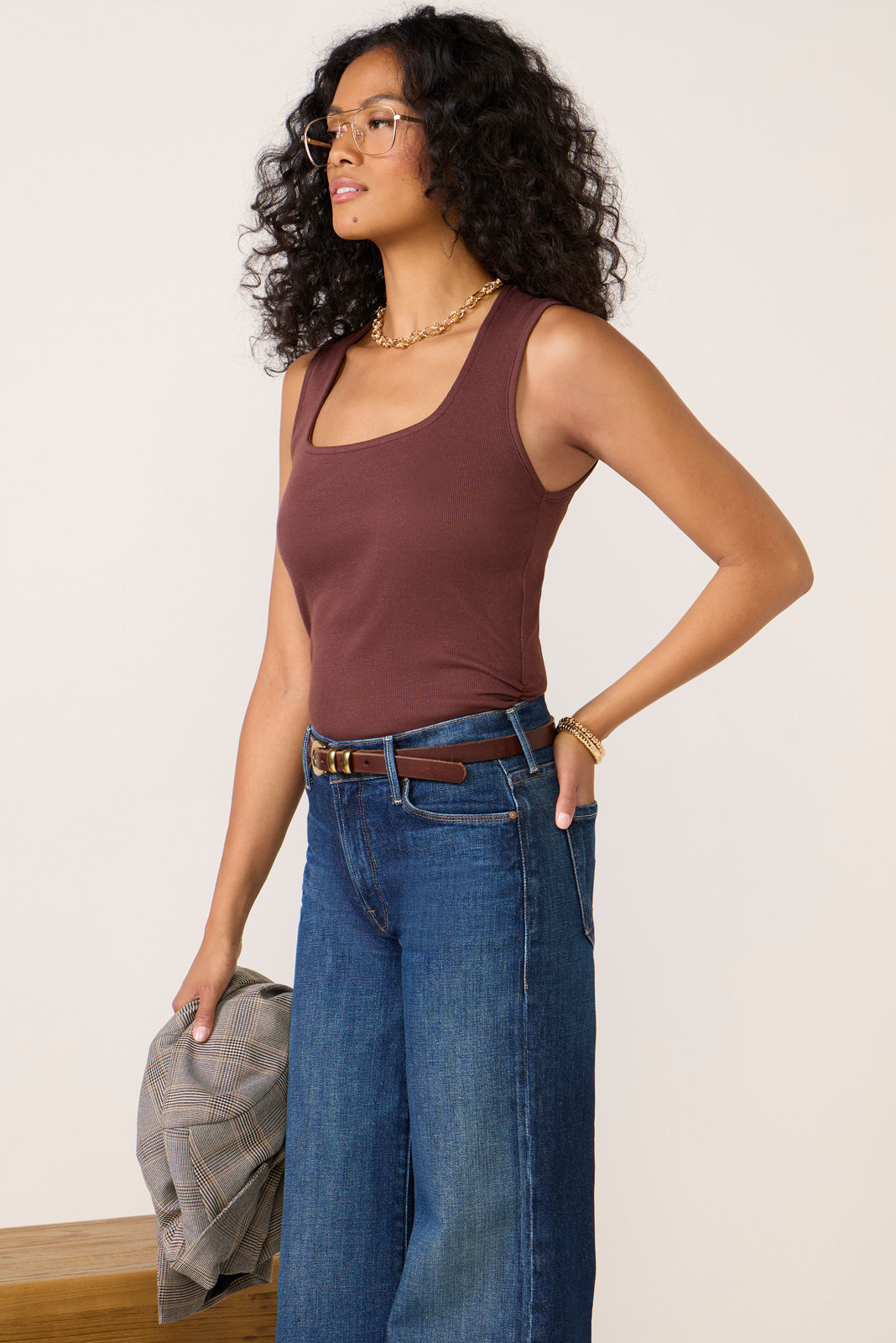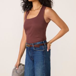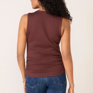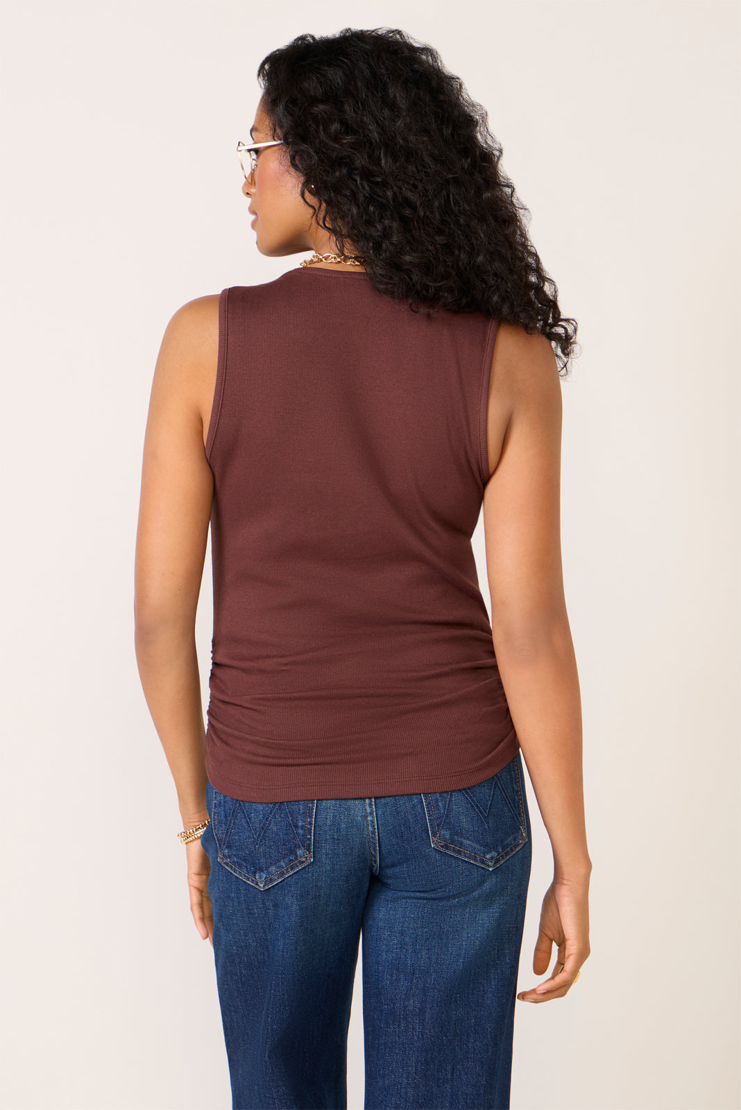 A chic square neckline defines this versatile tank top by Michael Stars, finished in soft rib knit fabric with ruching at thesides for a flattering touch.