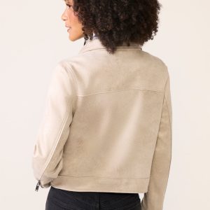 Add instant edge to your look with the Mack jacket by EVEREVE. Finished in soft faux leather-like fabric, this zip-up moto jacket features a cropped silhouette,frontpockets, and long sleeves with zipper cuffs.