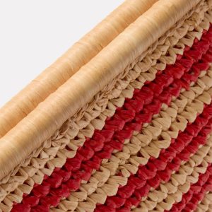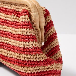 Perfect for carrying from brunch plans to beach days, this boho-inspired clutch by BTB features a striped raffia exterior, frame top, and lined interior.