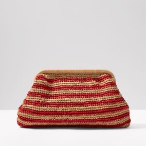 Perfect for carrying from brunch plans to beach days, this boho-inspired clutch by BTB features a striped raffia exterior, frame top, and lined interior.