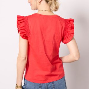 Ruffled flutter sleeves add a fun and feminine edge to the Maia top by EVEREVE, featuring a crewneck silhouette in soft cotton fabric.