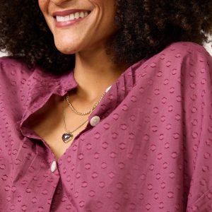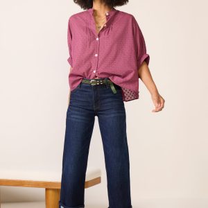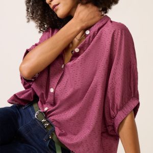 Crafted in organic cotton fabric, this button-front blouse by Emerson Fry features a mandarin collar, elbow-length puff sleeves, and pleated yoke detailing. This spring-ready top is finished in a flowy fit for an easy, effortless feel—perfect for dressing up or down.