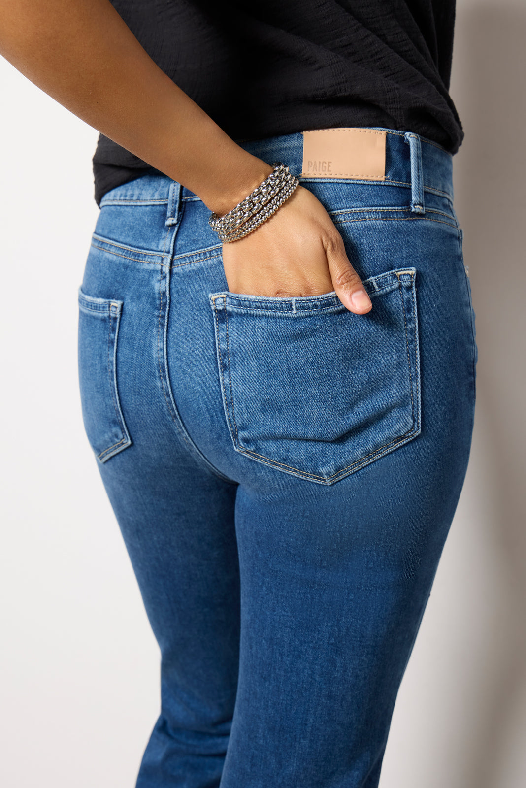 The Manhattan bootcut jean by Paige features a flattering silhouette that’s fitted through the hips and thighs with an elongating full-length leg.The soft stretch denim and faded bluewash make them perfect for day-to-night wear.