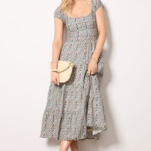 Romantic details define the Marchella Dress by Paige, featuring a scoop neckline, a gathered bodice, tiered detailing, and a smocked back panel.