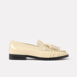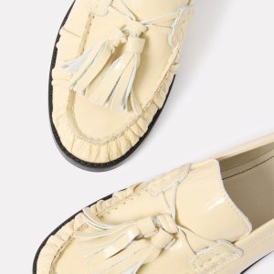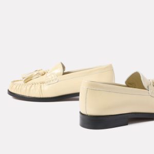 Finished in cream patent leather, the Marietta Loafers by ALOHAS will take you from office to evening plans in style, featuring a round toe, low heel, and tassel details.