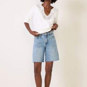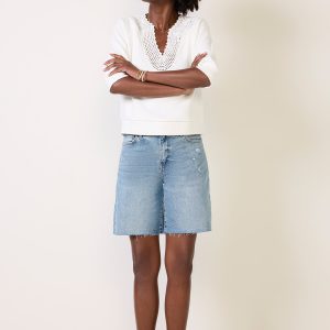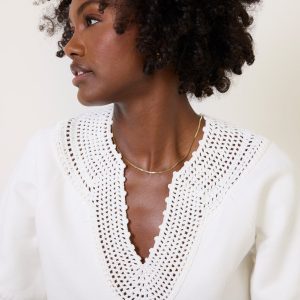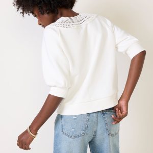 Designed with a crochet neckline, this summery pullover sweatshirt by Rails is finished in comfortable cotton fleece and features a relaxed fit, banded hem, andelbow-lengthpuff sleeves for an elevated feel.