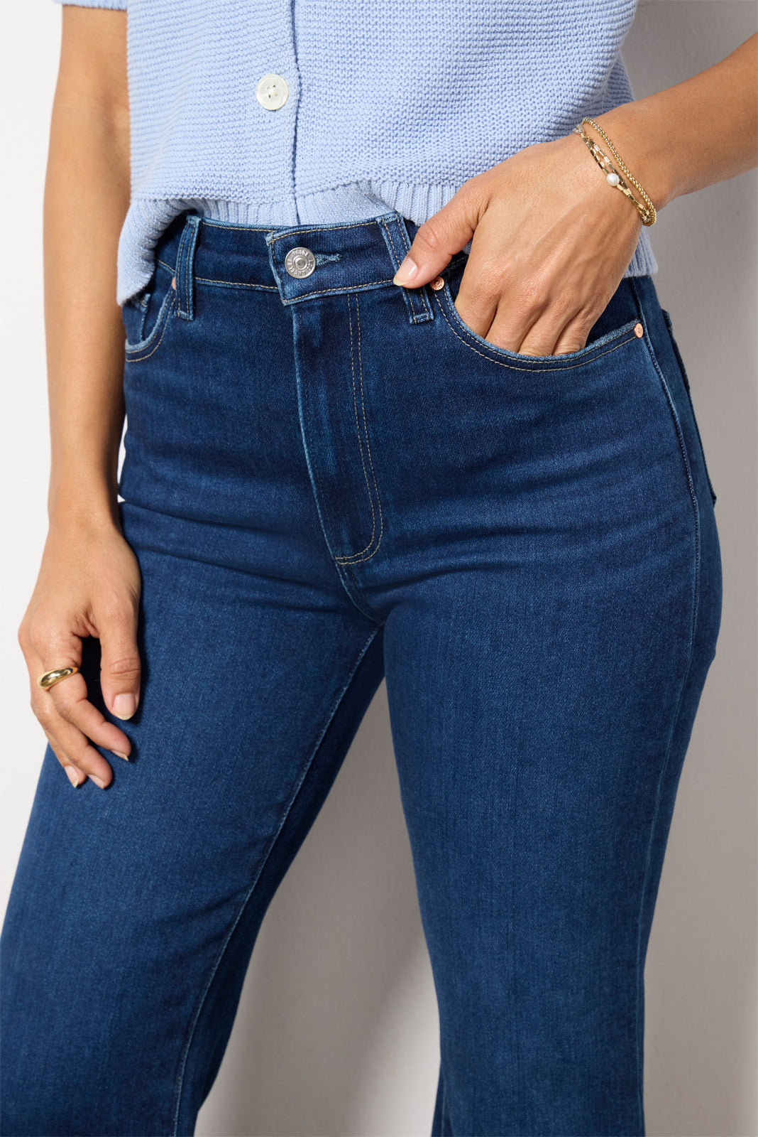 Designed to fit and flatter, the MarlowSkimmer flare jean by Paige is crafted in softcotton-blend denim with a high-rise waist, dark blue wash, and clean hems.