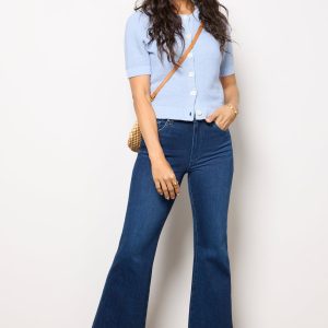 Designed to fit and flatter, the MarlowSkimmer flare jean by Paige is crafted in softcotton-blend denim with a high-rise waist, dark blue wash, and clean hems.