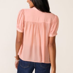 Finished in flowy, semi-sheer georgette fabric, the Marsala Blouse by Paige features a relaxed silhouette with a button-front neckline and short puff sleeves for a feminine feel.