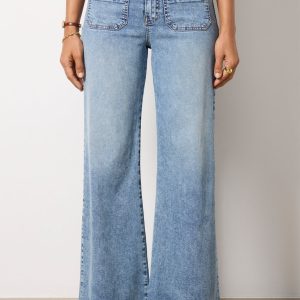 Patch pocket detailing updates the most-loved Meg jean by KUT From The Kloth. Perfect for any day-to-night look, these wide-leg jeans are crafted in comfort-stretch denim with ankle-length raw hems and a light blue wash.