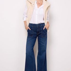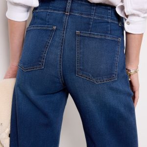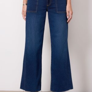 Front patch pockets add a polished, utility-inspired feel to the most-loved Meg jean by Kut From The Kloth. Perfect for day-to-night wear, these wide leg jeans feature back darting details, full-length raw hems, and soft stretch denim in a dark blue wash.