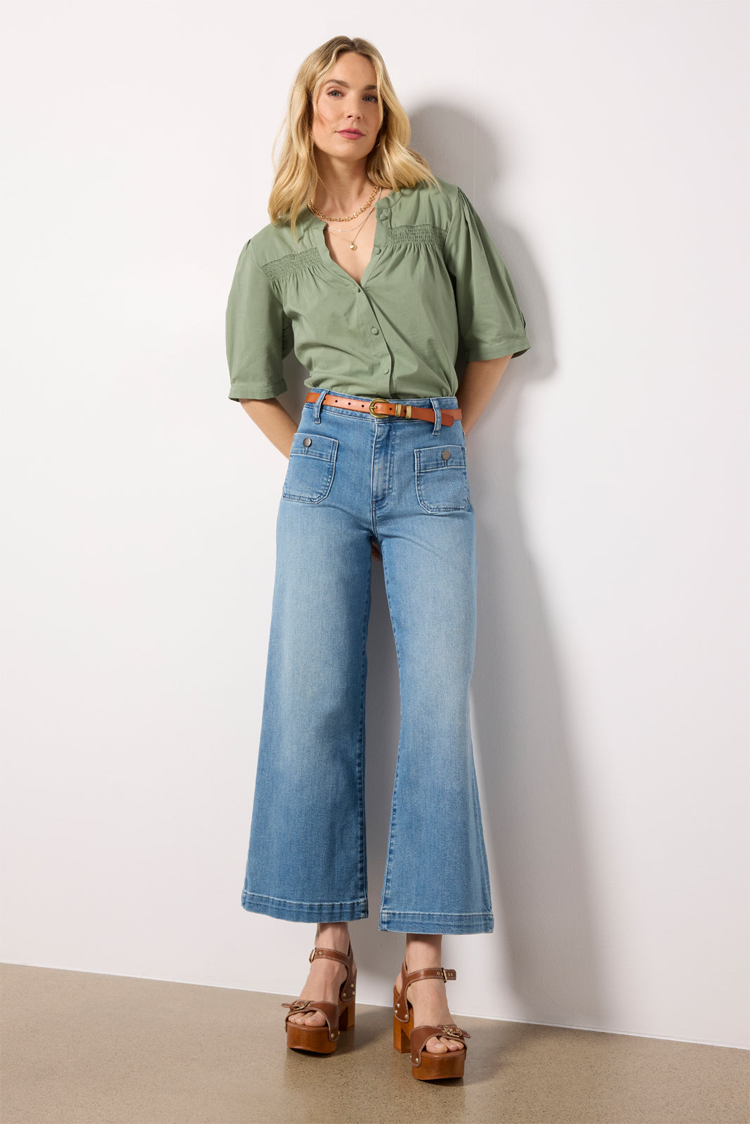 Patch pocket detailing updates the most-loved Meg jean by KUT From The Kloth. Perfect for any day-to-night look, these wide-leg jeans are crafted in comfort-stretch denim with ankle-length hems and alightblue wash.