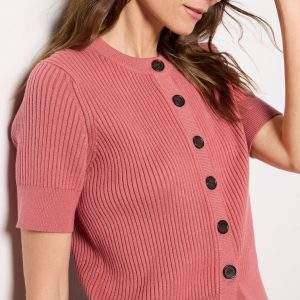 A chic addition to your sweater collection, the Micha cardigan by Varley is crafted in a soft ribbed knit and features a slightly cropped fit, front button closures, and short sleeves.