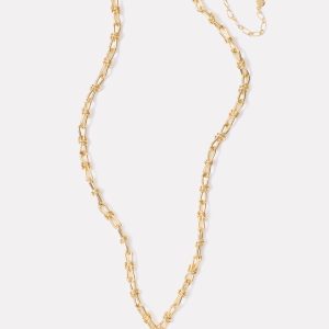Finished in 14k gold plating, the Mika necklace by EVEREVE features a bold chain link design with a textured heart pendant—perfect for wearing alone or layered.