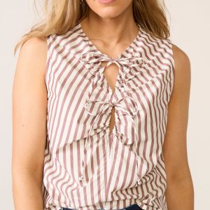 Perfect for day-to-night wear, the Mimmi striped top by Nation Los Angeles is crafted from midweight cotton poplin and features a front keyhole design with tie closures.