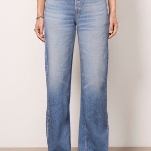 Thesewide leg pants byrag & bone are crafted in their signature Miramar fabric, a super-soft cotton terry that looks like denim but feels like your favorite lounge bottoms. They feature side seam pockets, elastic at the waist, printed belt loops, printed zip button fly, printed rivets, and printed pockets.
