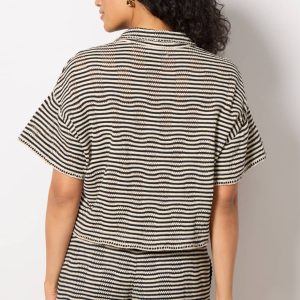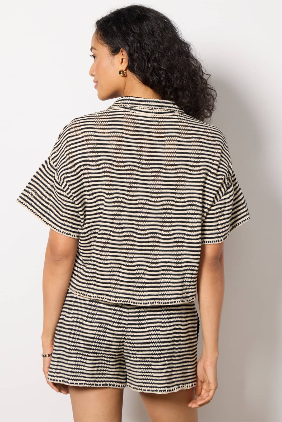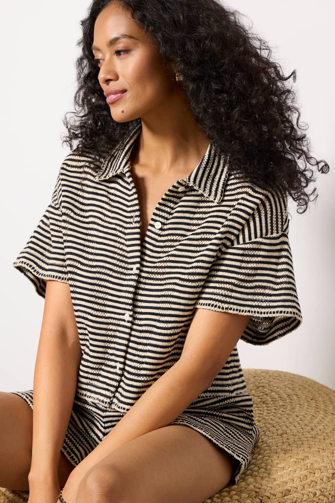 An easy summer staple, the Monaco button-up shirt by Z Supply will take you from brunch to beach in style.Thisstripedtop is finished in textured woven fabric andfeatures a boxy, cropped silhouette with a collared neckline and blanket stitch trim. Make it a set with the matching Arezzo Short.