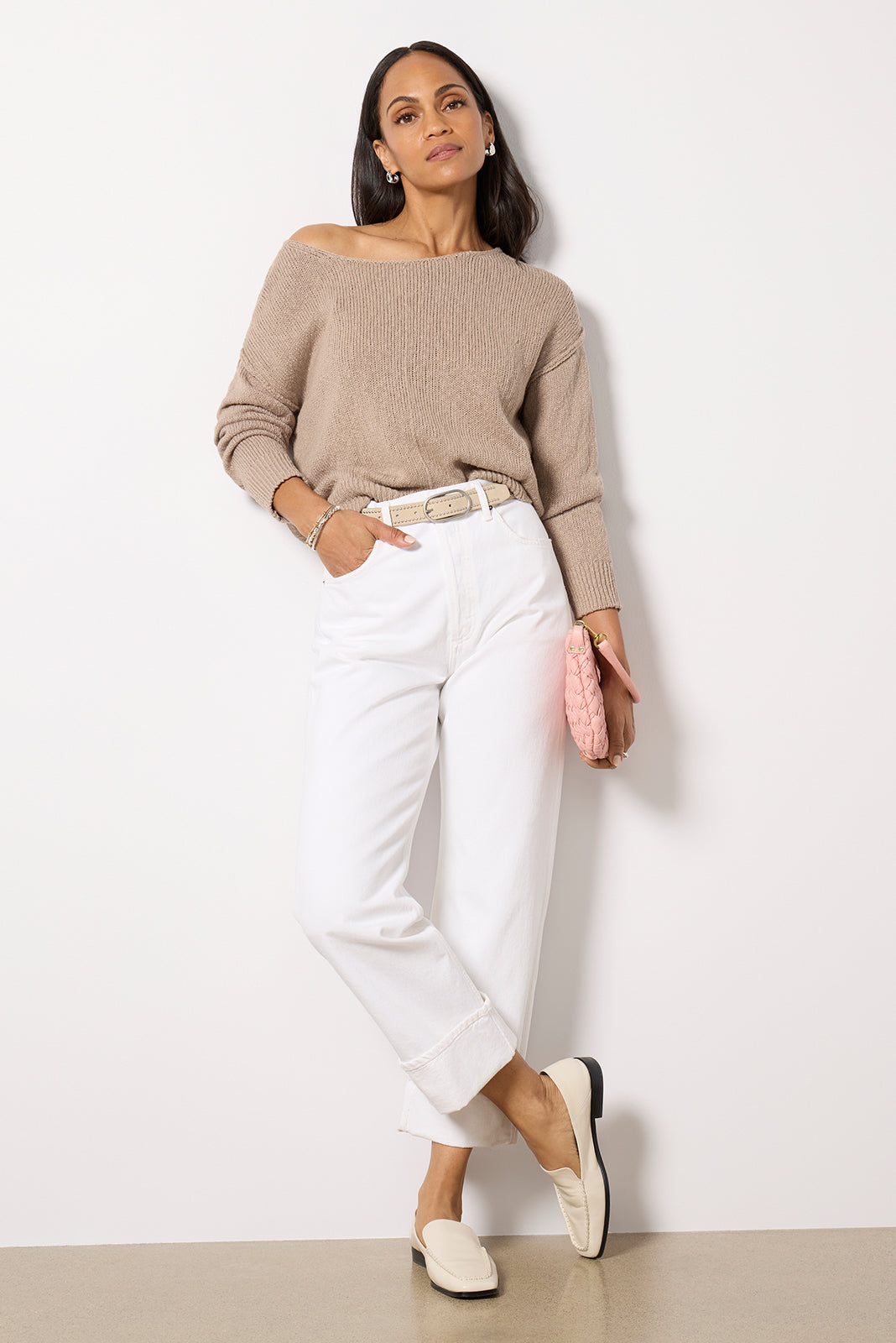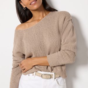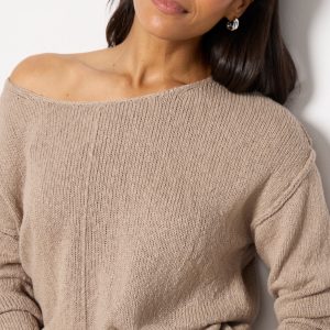 Update your knitwearcollection with the Naia Pullover by EVEREVE, featuring an off the shoulder neckline, reverse seam details, and a relaxed silhouette.