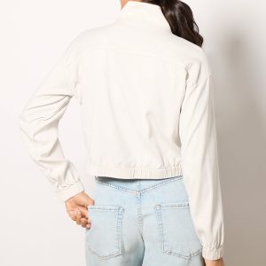 Addthe perfect light layer to your collection with the Nelle Camp Jacket by EVEREVE, featuring a zipper and snap front closure, oversized chest pockets, and a comfortable elastic hemline.