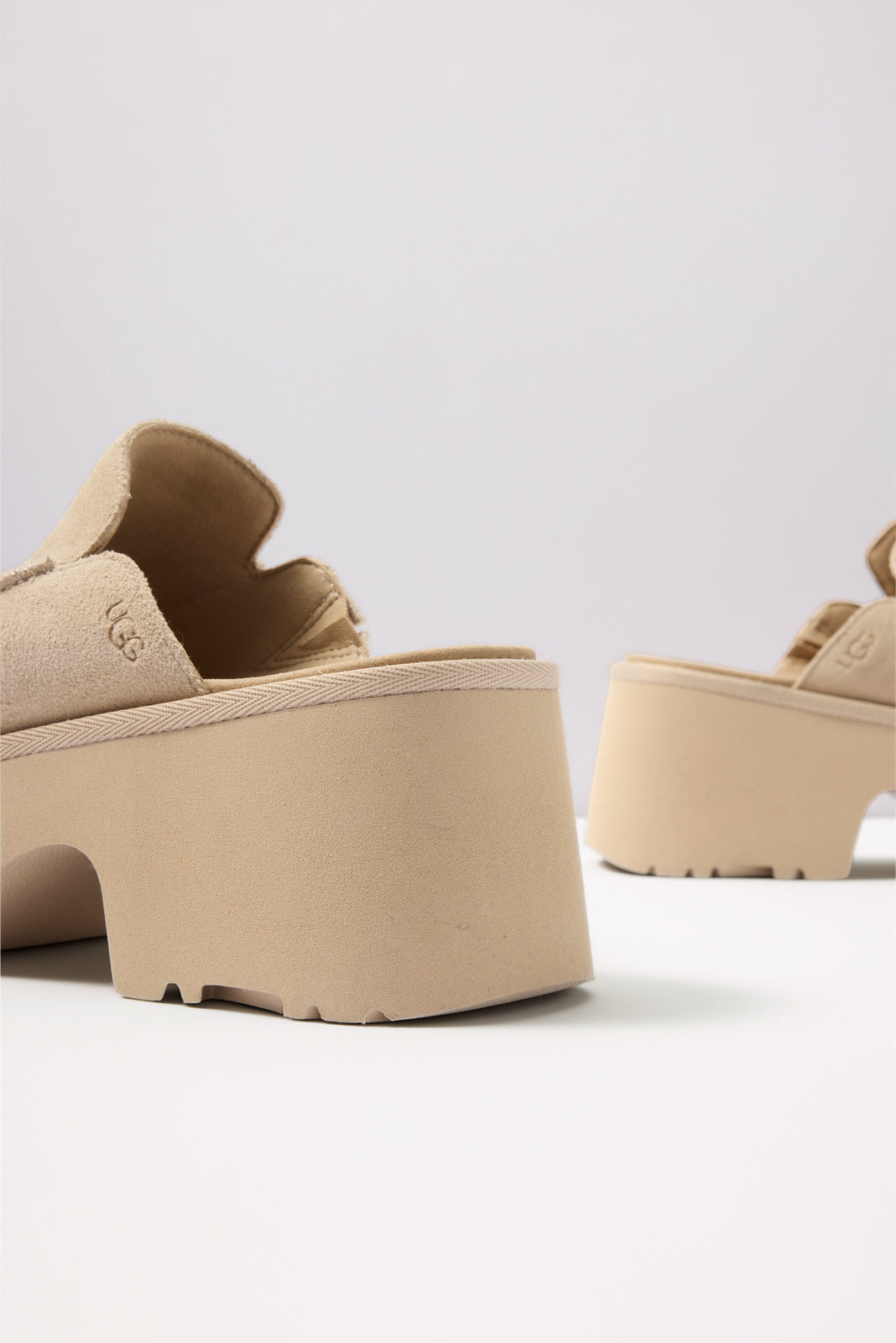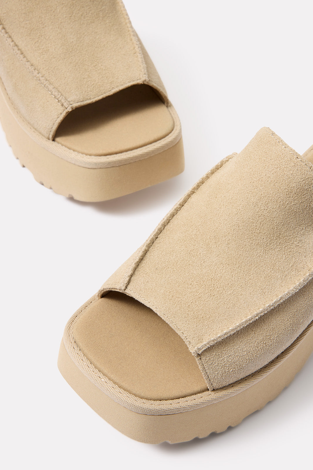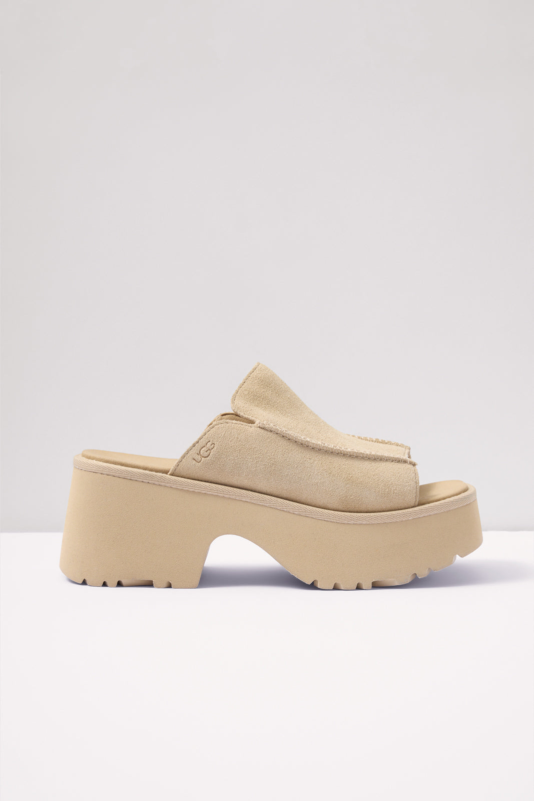 Give your warm-weather look a stylish lift with the New Heights Slide byUGG®. These slip-on sandals feature a soft suede upper, square toe, and bold platform sole—perfect for day-to-night wear.