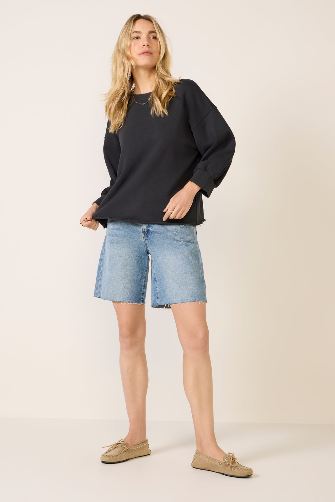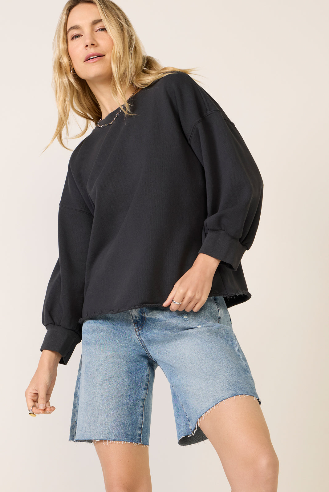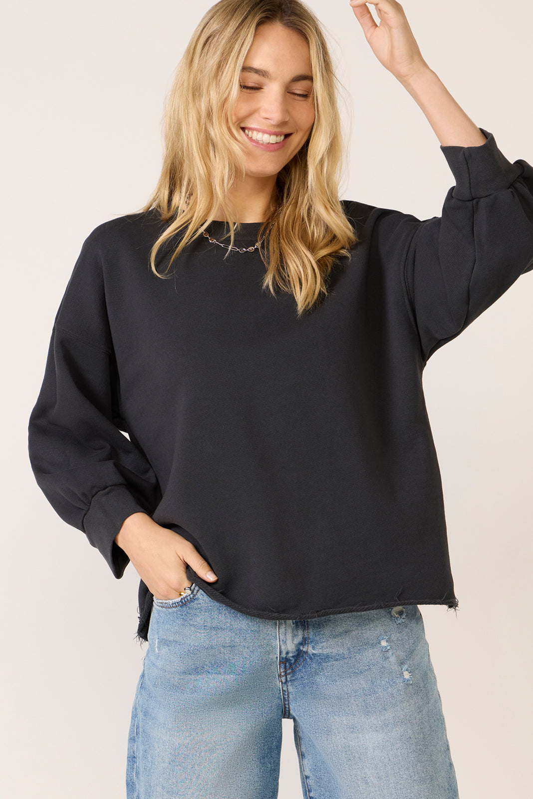 Designedwith comfort in mind, the Niall Fleece Pullover by Perfectwhitetee features a crew neckline, a relaxed fit, and a cropped raw hem.
