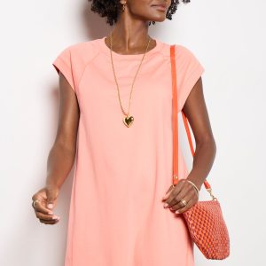 Your favorite tee, now in an easy, elevated dress.The Nora Muscle Dress by EVEREVE features arelaxed crewneck silhouette, raglan cap sleeves, and soft Pima cotton fabric for throw-on-and-go comfort.