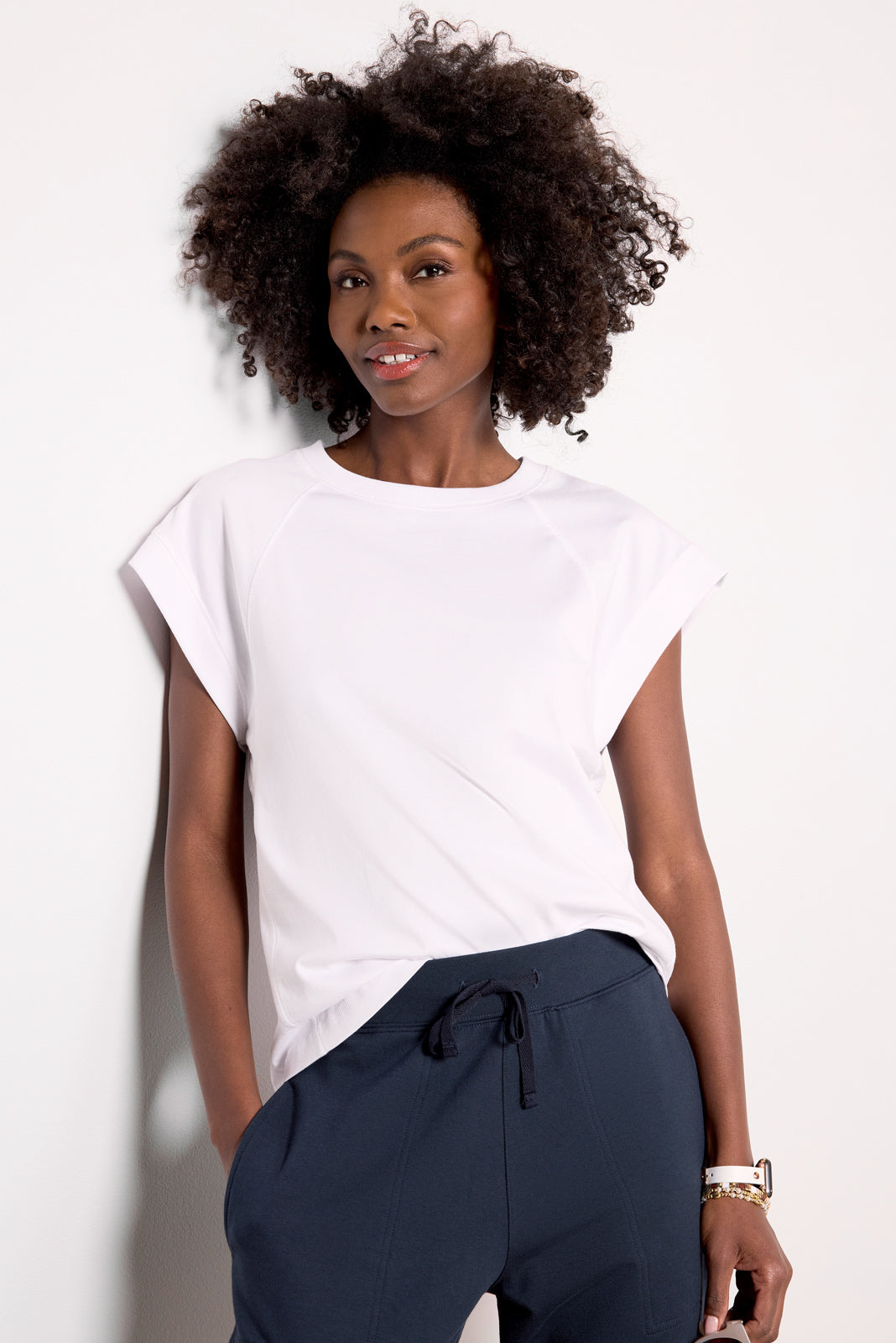 The Nora Muscle Tee by EVEREVE is the perfect spring staple, crafted in soft Pima cotton fabric with a crew neckline, relaxed fit, and raglan cap sleeves.
